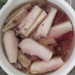 くださった方が、血抜きが必要と言われたため、ネットでも調べて、塩水と真水に漬けて血抜きをした。それで、焼肉と、しし汁にしてみた。